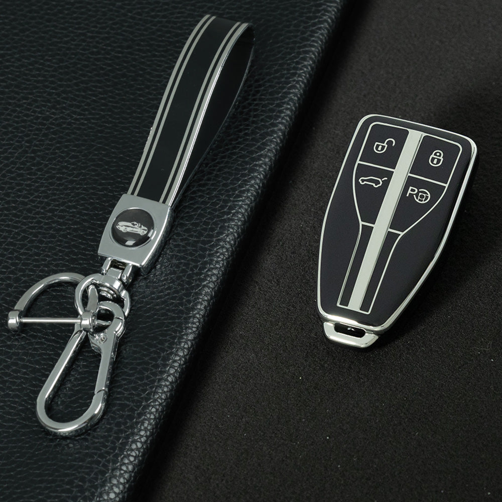 HNA2T1 Black-Silver Plating TPU Car Key Case Cover for Hong Qi HS5 HS3 HS7 H5 H9 H6